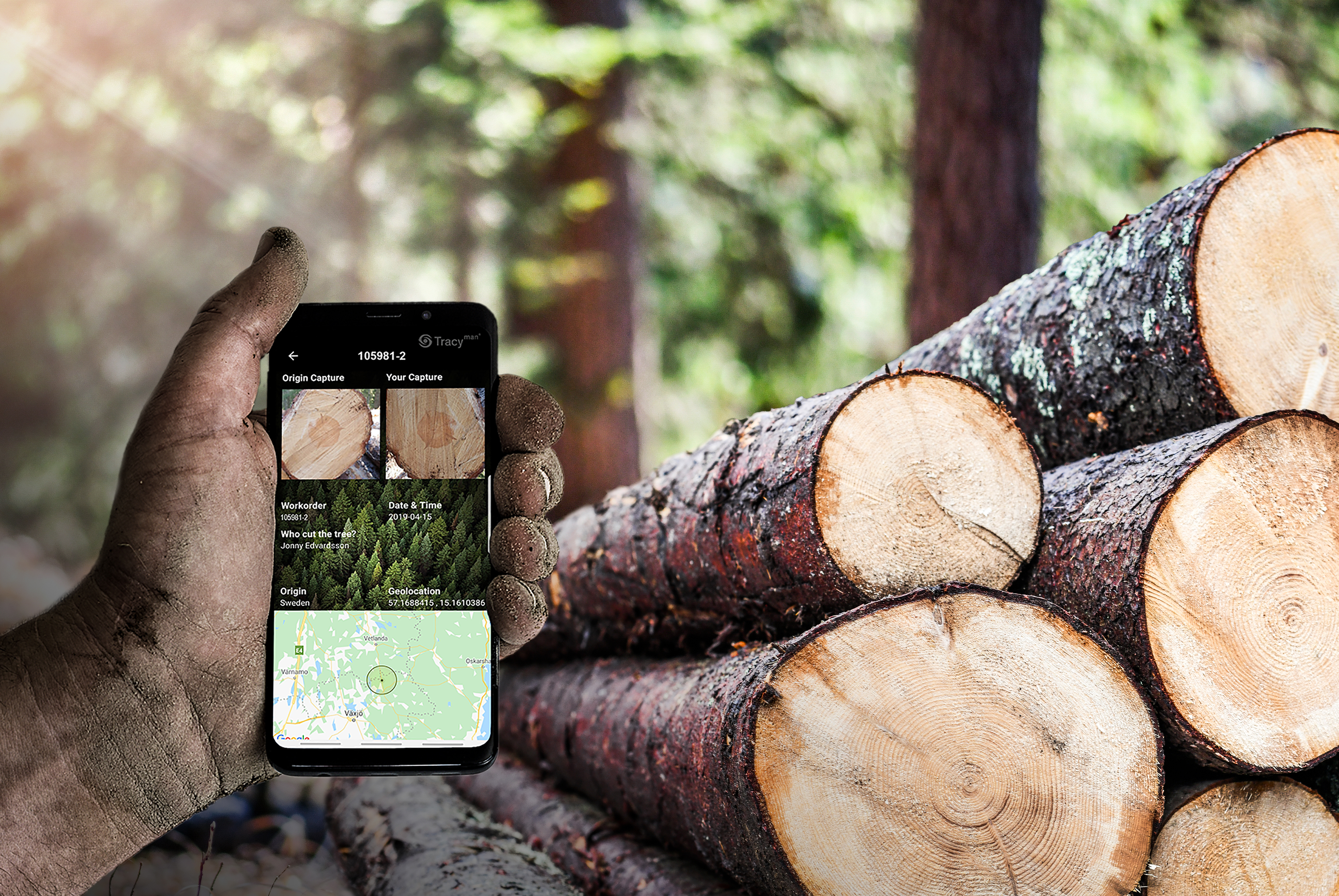Tracy of Sweden har utvecklat en patenterad teknik, Tracy Forestry™, som är ett tekniskt genombrott för leverans av digital äkta spårbarhet på stocknivå enligt gällande krav från EU:s Timmerförordning, FSC och PEFC. Guldvinnare av SkogsElmia Innovation Award 2019 för bästa skogsindustriella innovation.